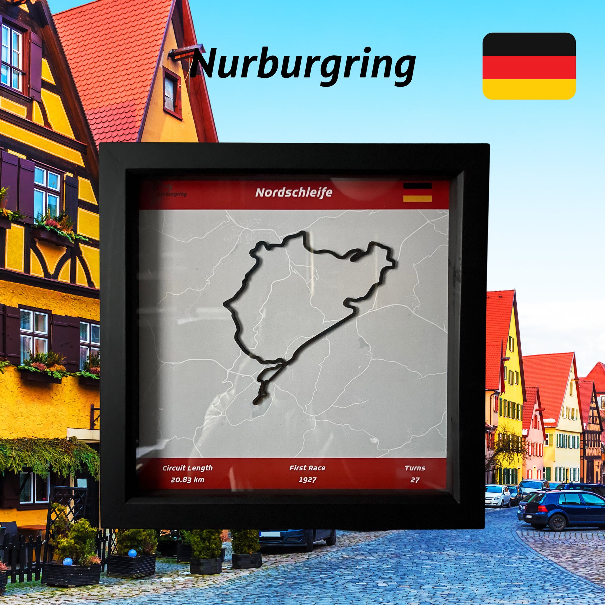 Nurburgring Circuit Map - in Black Square Frame -